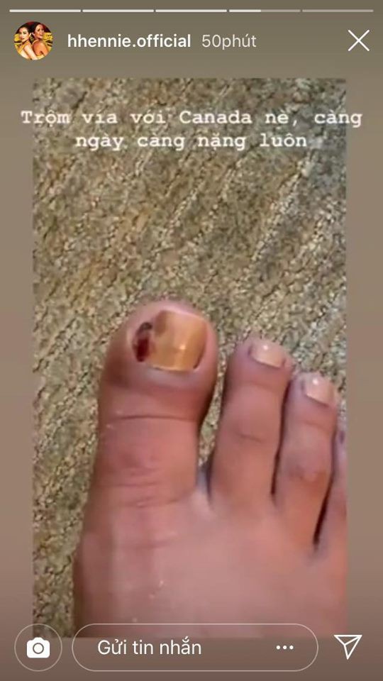 Mới đây, H'Hen Niê đã khiến cộng đồng mạng xót xa khi đăng tải lên trang cá nhân tình trạng đôi bàn chân của mình. Thường xuyên di chuyển, tham dự sự kiện trên những đôi giày cao gót, thế nên cuối cùng, bàn chân nàng hậu đã sưng to, đau đớn khôn cùng.