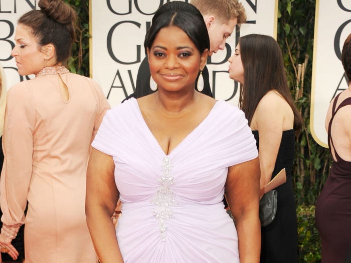 Octavia Spencer nhận được một số đề cử vào năm 2012 nhưng lại không có nổi một chiếc váy để tham dự ‘Quả cầu vàng’. Spencer nói với các phóng viên tại Liên hoan phim quốc tế Palm Springs rằng: “Tôi chỉ là một cô gái mũm mĩm, thấp lùn. Chẳng có ai chịu làm việc với tôi cả. Nhẽ ra tôi phải quyết tâm bỏ bơ đậu phộng từ năm ngoái”. Cuối cùng Spencer đã giành giải ‘Quả cầu vàng - nữ diễn viên phụ xuất sắc nhất’ năm đó với vai diễn Minny Jackson trong ‘The Help’.