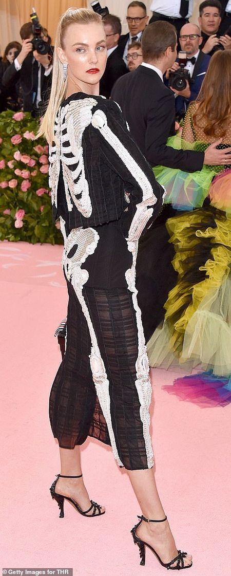 Caroline Trentini cũng “rất gì và này nọ” với bộ cánh xương người này. Nhưng hình như chân dài đang nhầm lẫn giữa tính chất một sự kiện thời trang và lễ hội hóa trang?