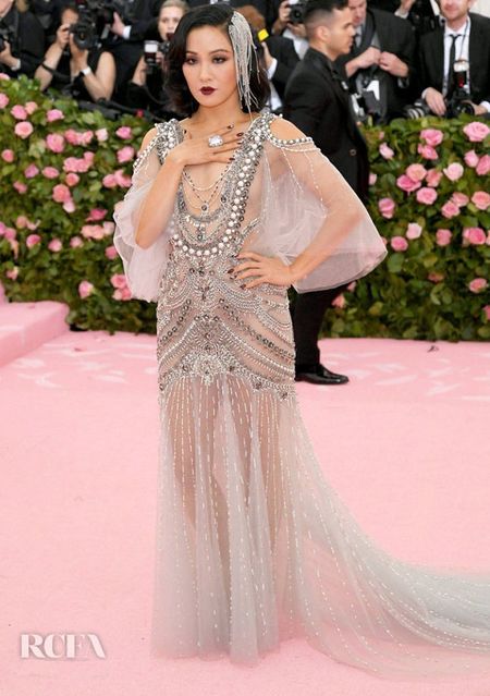 Trong phim thì lộng lẫy bao nhiêu, nhưng ngoài đời Constance Wu lại “đáng sợ” bấy nhiêu. Xét cho cùng, mẫu đầm dạ hội xuyên thấu với vô vàn ngọc ngà châu báu kia không xấu, nhưng khi vận lên người, cài thêm món phụ kiện khó hiểu lên tóc cùng đánh nhẹ tí son thâm thì kết quả sẽ là một vẻ ngoài chắc chỉ hợp đi Halloween.