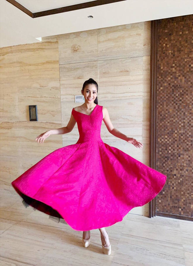 Mới đây, Tiểu Vy đã khiến không ít người thích thú khi khoe dáng trong chiếc váy hồng bồng xòe. Đại diện Việt tại Miss World 2018 tươi tắn như một nàng công chúa đang sải những bước khiêu vũ kiêu kỳ, ấn tượng.