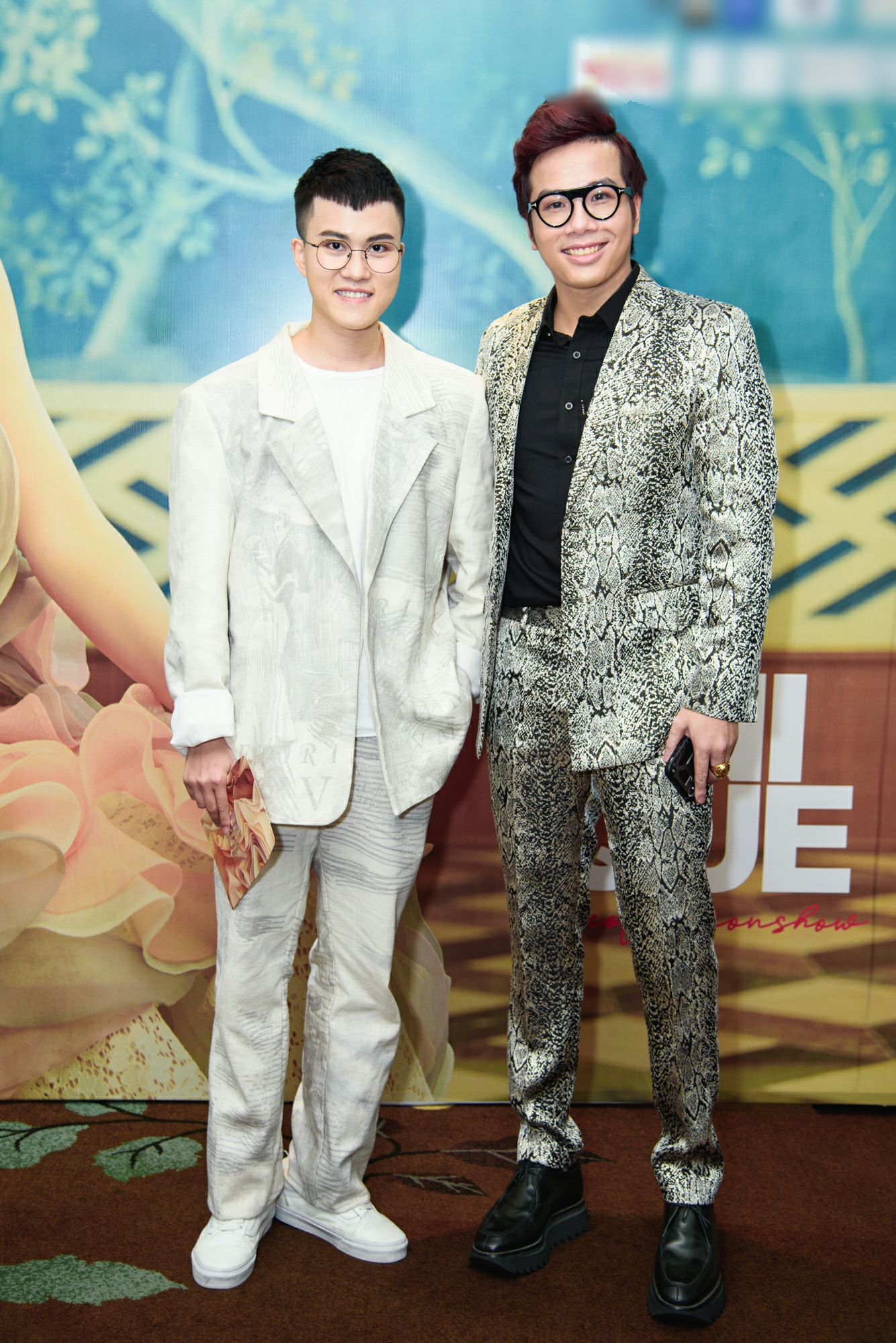Ca sĩ Lê Thiện Hiếu (bên trái) chọn cho mình bộ suits phom suông rộng theo tông màu pastel cả cây.