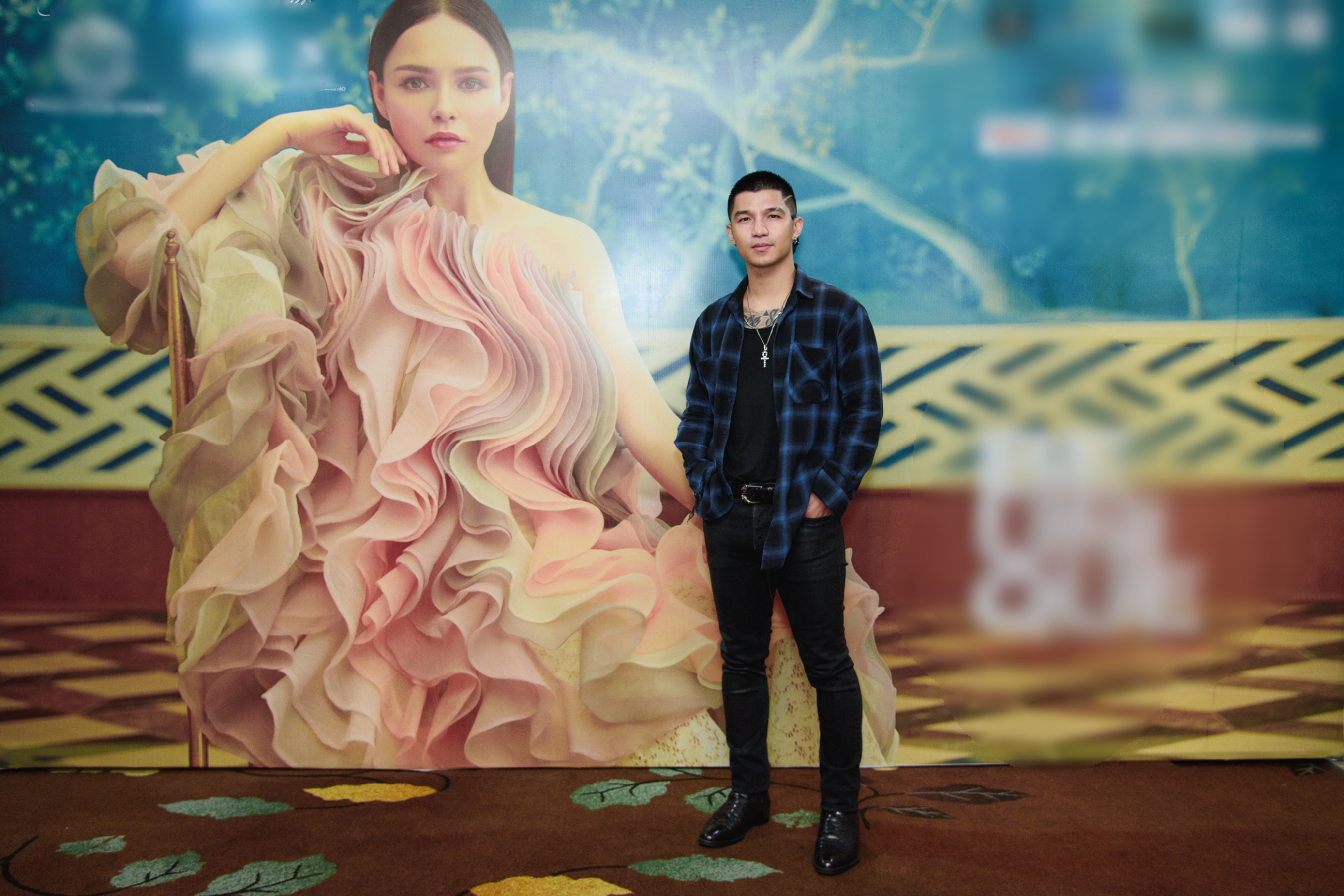 Cường Seven chọn cho mình bộ cánh đơn giản với áo sơ-mi kẻ ca-rô mix cùng áo phông và quần kaki đen nam tính, mạnh mẽ.