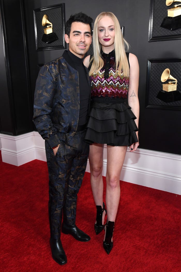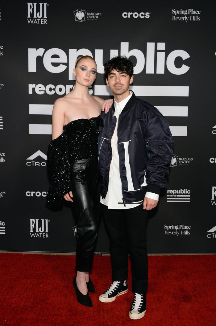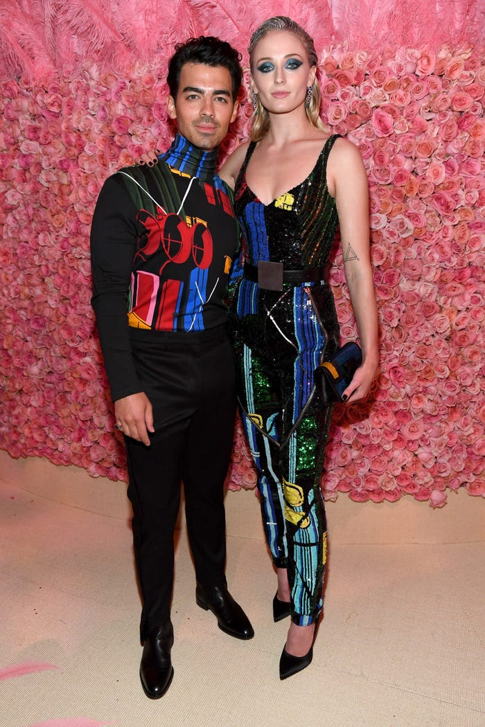 Trong một buổi tiệc xế năm 2019, Joe Jonas mặc một bộ đồ màu xám đậm, còn Turner rạng rỡ trong bộ đồ của Victoria Beckham với đôi xăng đan Tabitha Simmons.