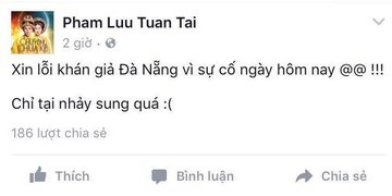 Sau đó, nam ca sĩ cũng đăng tải một dòng trạng thái xin lỗi khán giả trên trang cá nhân.
