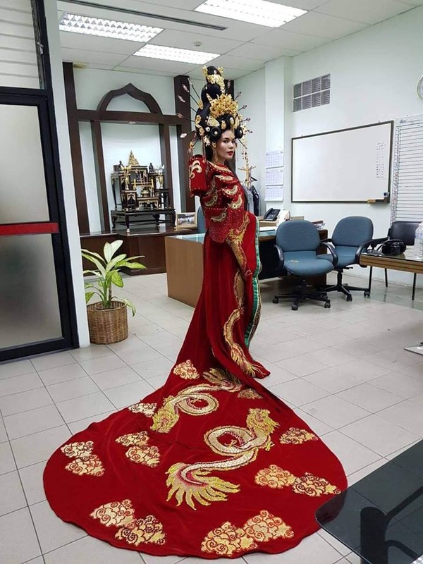 Trước đó, cựu Hoa hậu Hoàn vũ Thái Lan 2016 - Chalita Suansane cũng khiến công chúng à ồ khi hóa thân thành hình ảnh “mẫu nghi thiên hạ” khi tham dự một sự kiện quan trọng.