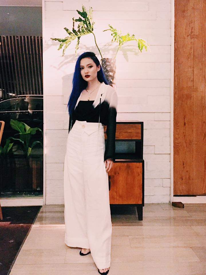 Mái tóc xanh đẹp, chiếc áo ombre cũng nổi nhưng nhìn vào tổng thể của Fung La, thật sự khó để biết được cô nàng đang muốn nhấn nhá vào đâu. Bên cạnh đó, chiếc quần phom rộng nhăn nhúm tưởng tôn dáng nhưng hóa ra lại làm nữ người mẫu bị “dìm hàng” trầm trọng.