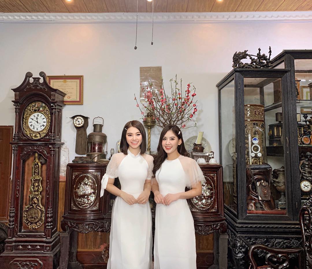 Jolie Nguyễn lại diện áo dài đôi có tông màu trắng, tay rút bồng ấn tượng.