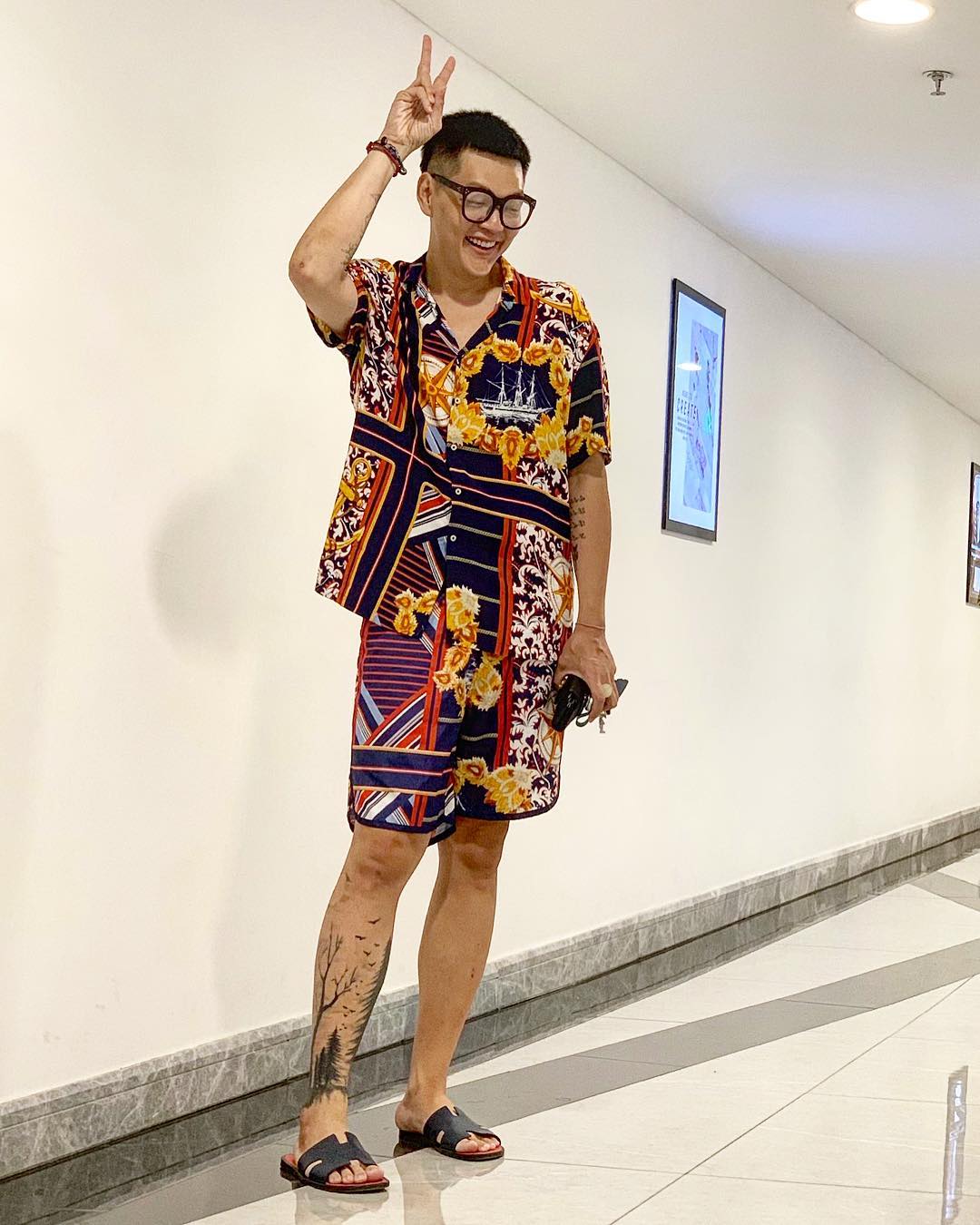 NTK Tăng Thành Công trông trẻ trung, thú vị với cả set đồ màu sắc mix cùng đôi dép Hermes.