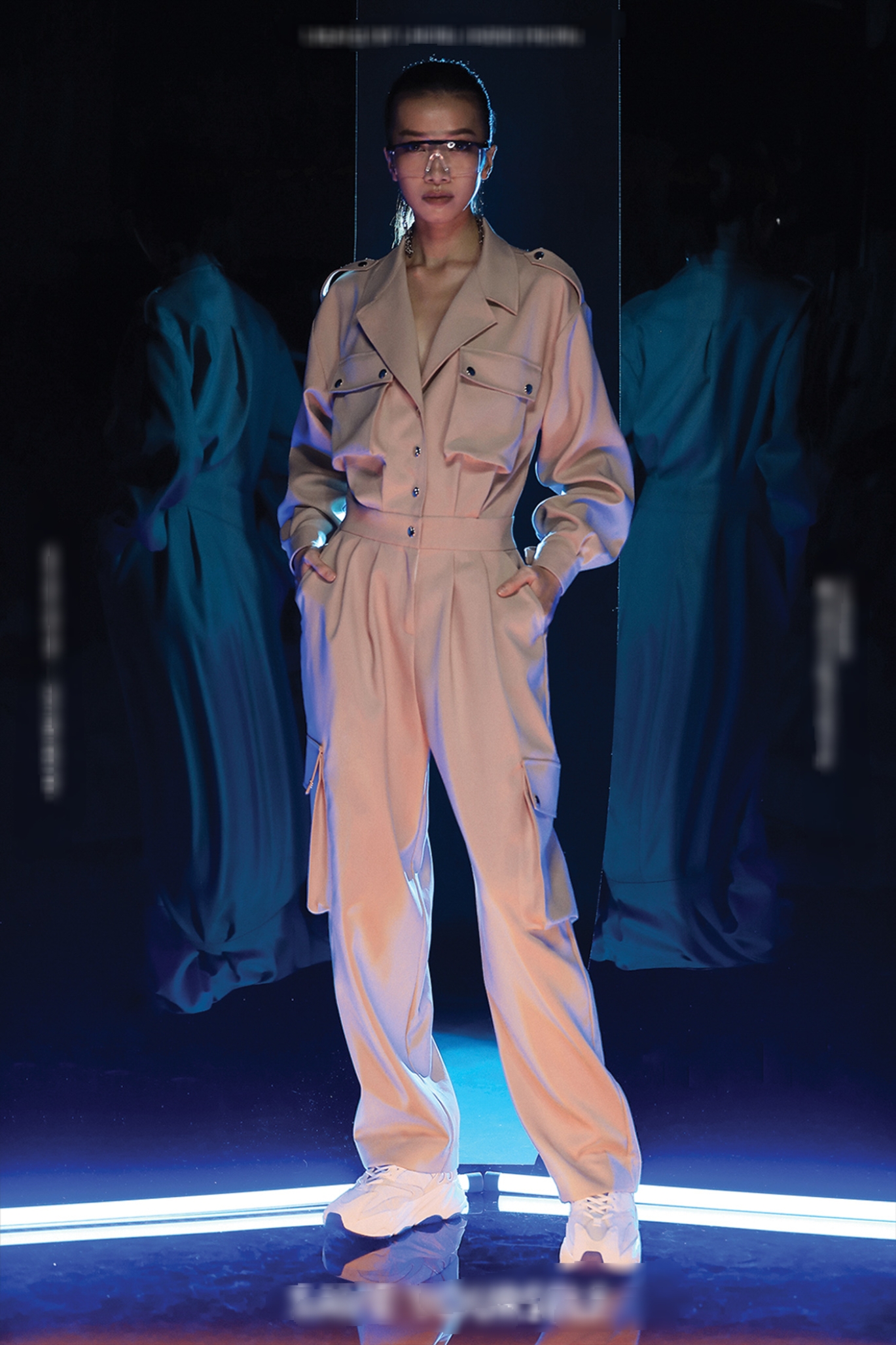 Những bộ jumpsuit rộng rãi freesize với khoá kéo trước, dây kéo kim loại, túi hộp trendy quả thật tạo điểm nhấn không nhỏ cho BST lần này.