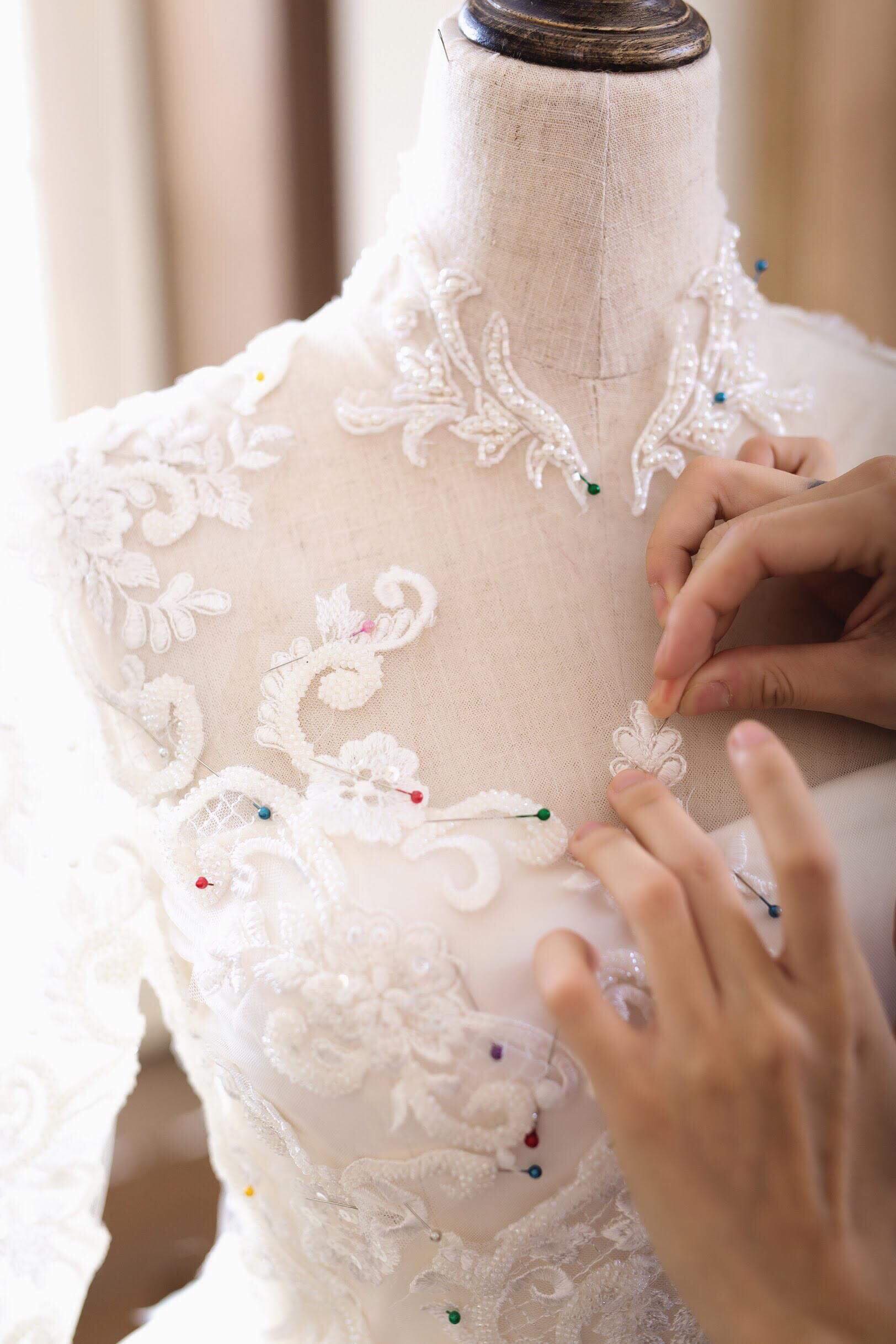 Chị Nguyễn Quỳnh Anh - người sáng lập ra thương hiệu LECIA BRIDAL chia sẻ “Nhận được lời đề nghị thiết kế váy cưới cho Á hậu Thanh Tú, tôi vừa mừng vừa lo. Mừng vì được một người đẹp nổi tiếng lựa chọn để thiết kế mẫu váy dành cho ngày trọng đại trong cuộc đời, vừa lo vì không biết LECIA có thể làm hài lòng Thanh Tú hay không.