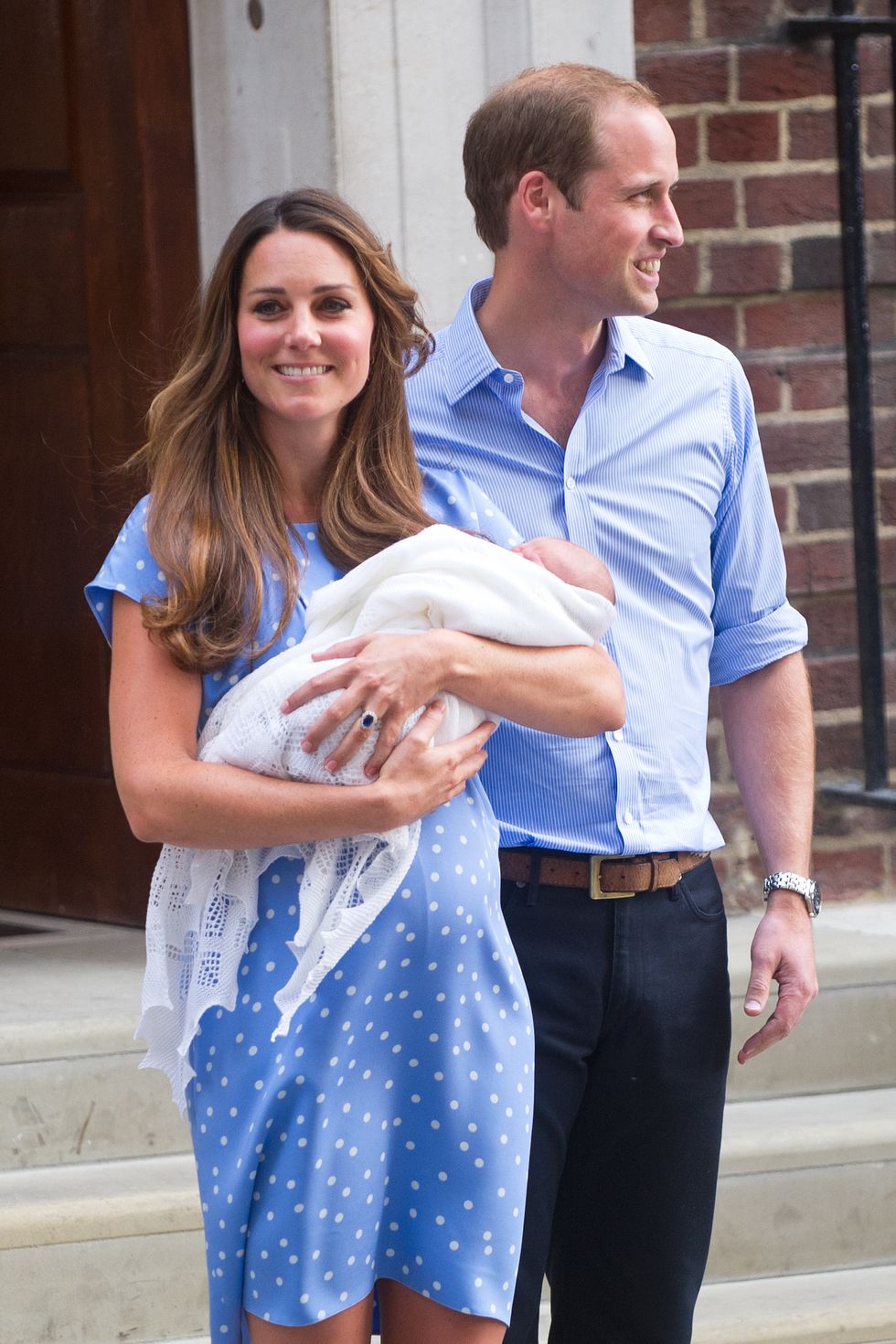 Bộ váy màu đỏ với những chi tiết màu trắng của Kate làm chúng ta nhớ đến chiếc váy của công nương Diana khi giới thiệu hoàng tử bé Harry. Đây cũng là màu sắc tôn vinh vị thánh bảo trợ của Anh, Thánh George. Thật tình cờ là ngày lễ của thánh cũng trùng với ngày hoàng tử được sinh ra.