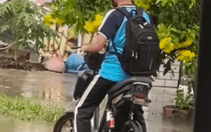 Nam sinh loay hoay ở vũng nước giữa đường, biết lý do ai nấy cũng cảm thông