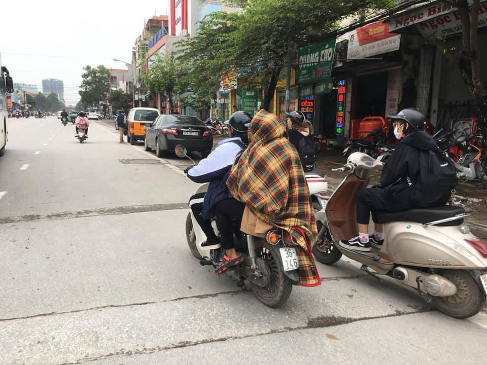 Sinh viên cuốn chăn điều khiển xe máy trên đường