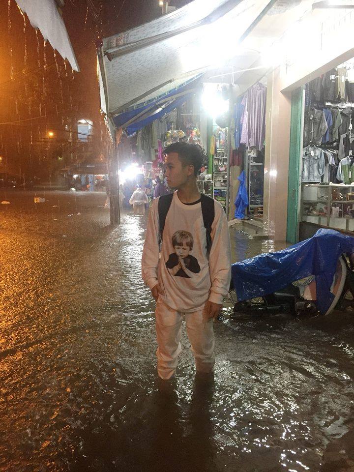 Nhiều sinh viên chia sẻ hình ảnh khu trọ ngập mênh mang nước hay những hình ảnh lội mưa đi học trên mạng xã hội.