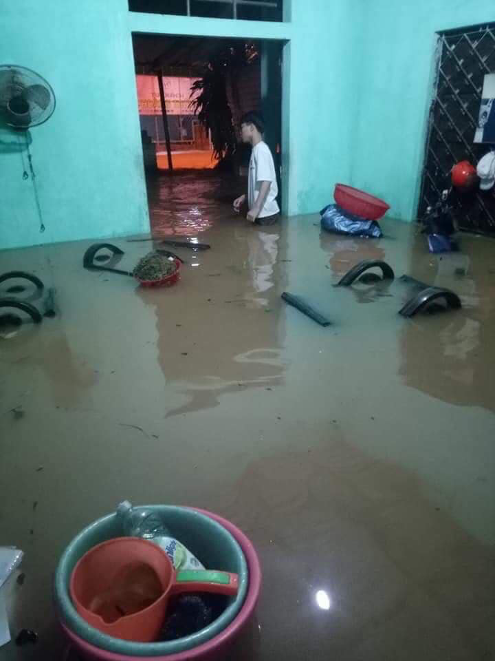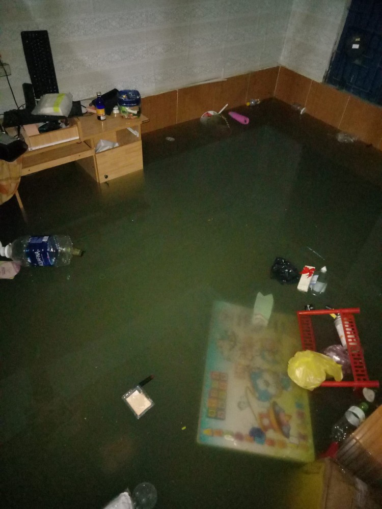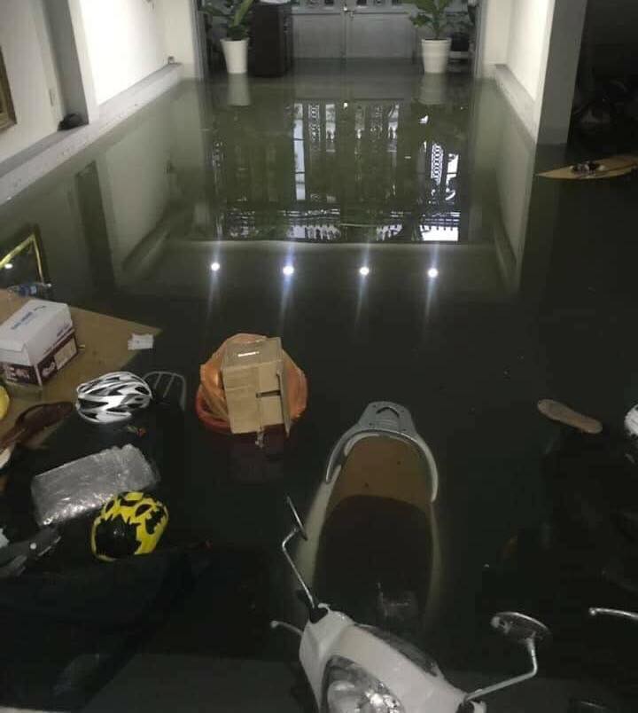 Đồ đạc trong phòng trôi trong nước mưa.