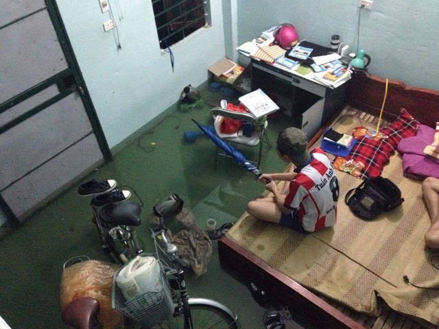 Phòng trọ của sinh viên ngập thảm hại.