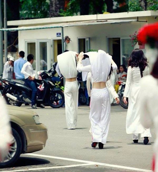 Đôi khi tà áo dài còn thêm công dụng che nắng thần kì.