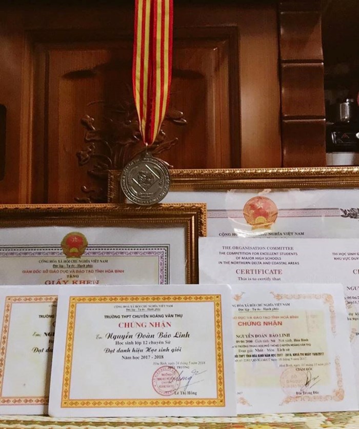 Nguyễn Đoàn Bảo Linh là học sinh lớp chuyên Sử của THPT chuyên Hoàng Văn Thụ - Hòa Bình