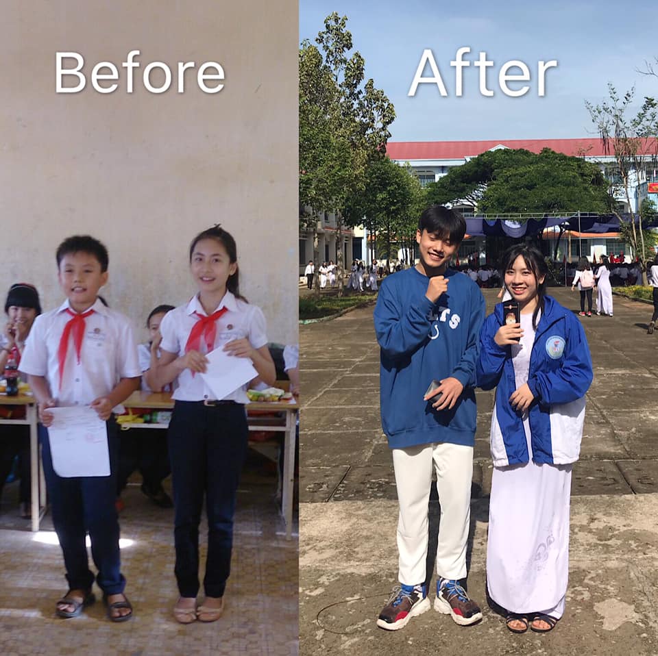 Đó là câu chuyện của Nguyễn Trần Lê Na và Đoàn Quốc Thắng (cùng là học sinh lớp 12 THPT Đức Linh, Bình Thuận). Bức ảnh dậy thì sau 6 năm được Lê Na đăng tải khiến cộng đồng mạng nức lòng ngợi ca. 6 năm trước, Lê Na cao hơn hẳn Quốc Thắng một cái đầu, thế mà 6 năm sau, Thắng đã vượt qua chiều cao của Na và trở thành một chàng trai đẹp trai, trắng trẻo ngời ngời. Thoắt cái, Lê Na cũng cao lớn, xinh xắn và đáng yêu hơn nhiều so với ngày cả hai cùng học trung học.