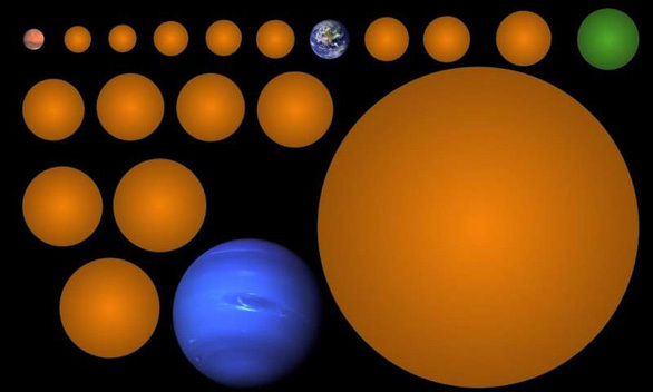 Hình ảnh mô tả tỉ lệ kích thước những hành tinh so với trái đất do Kunimoto phát hiện