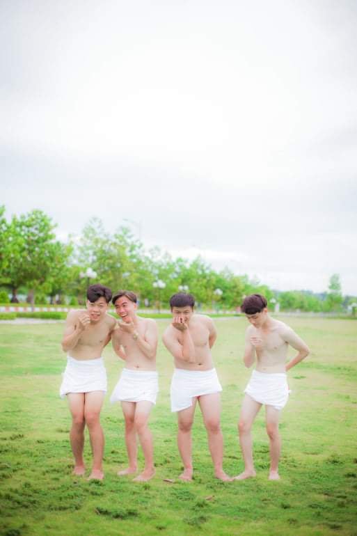 “Xem mấy bức các bạn nam cởi trần, quấn khố mà tưởng chụp ảnh poster cho phim người lớn nữa, phải chú thích là ảnh kỷ yếu thì mới biết”, một nickname lên tiếng.