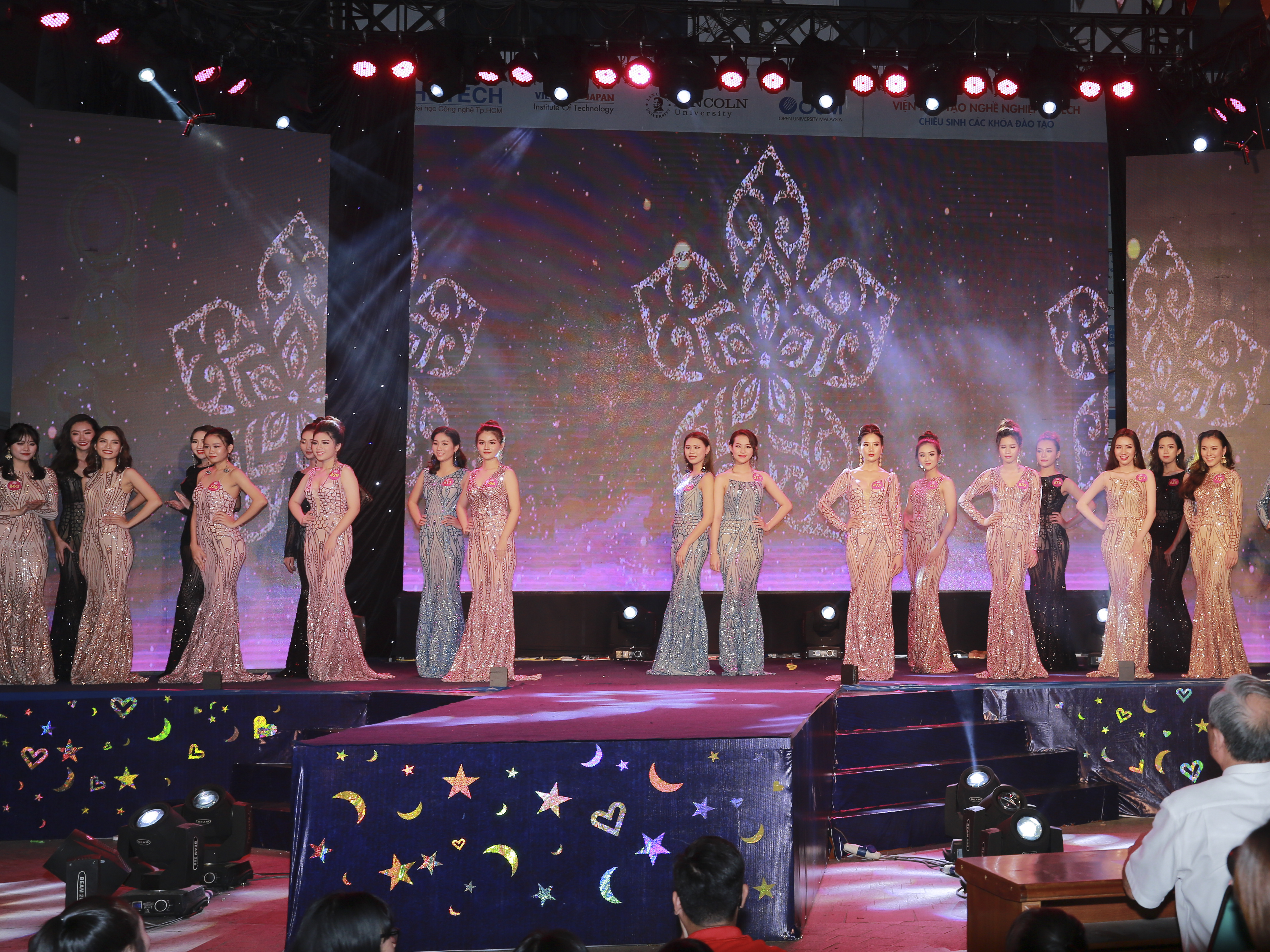 Tại Miss Hutech 2019, có nhiều thí sinh lần đầu đứng trên sân khấu của cuộc thi nhan sắc nhưng các bạn rất tự tin khi xuất hiện trước hàng ngàn khán giả.