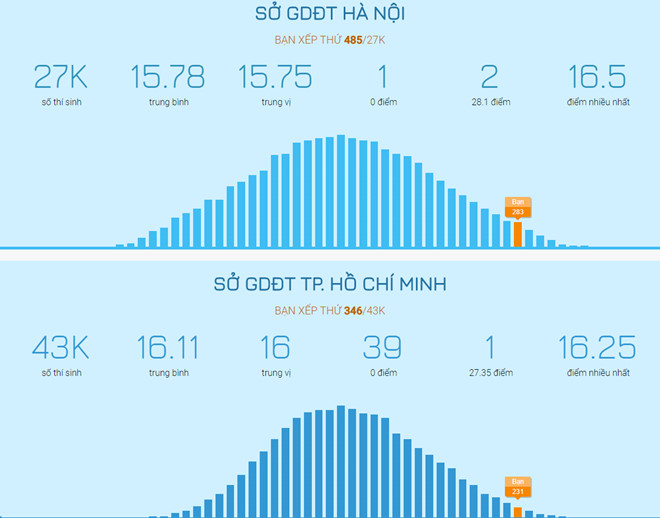 Nếu chỉ xét dữ liệu điểm thi của Sở GD&ĐT thành phố Hà Nội, Minh Anh thuộc top 500 thí sinh có tổ hợp điểm khối A01 cao nhất, cụ thể bạn đứng thứ 485 trong tổng số 27.000 thí sinh.