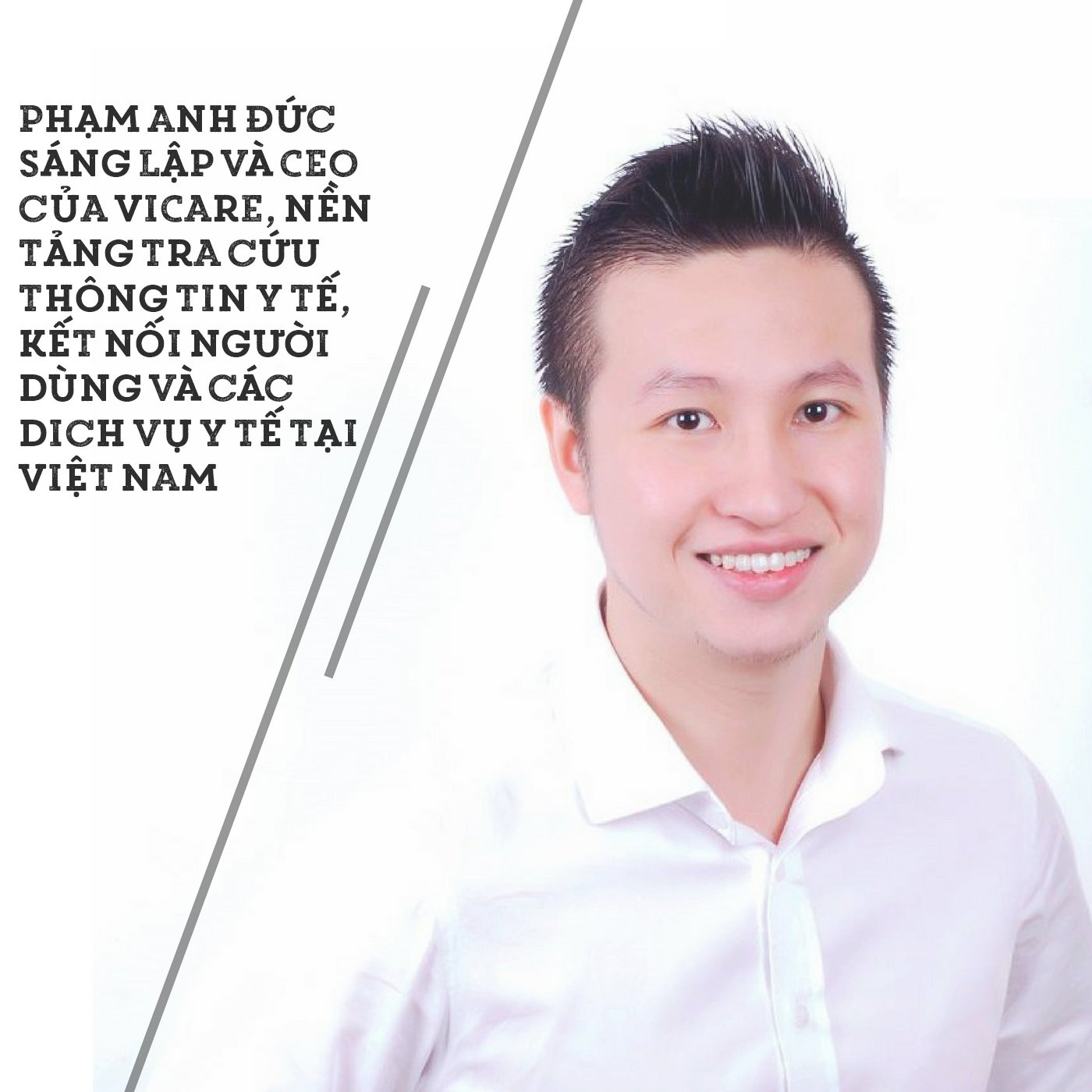 Phạm Đức Anh là người sáng lập và điều hành công ty cổ phần Vicare, nền tảng tra cứu thông tin y tế, kết nối người dùng và các dịch vụ y tế Việt Nam. Đồng thời, trang web cũng tư vấn, trả lời câu hỏi liên quan tới sức khỏe mà người dùng đặt ra.