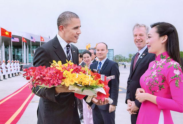 21 giờ 30 tối 22/5/2016, Tổng thống Mỹ Obama đã đặt chân đến Hà Nội để thăm chính thức Việt Nam theo lời mời của Chủ tịch nước Trần Đại Quang. Hình ảnh khiến dân mạng sôi sục chính là cô gái với thân hình mảnh mai trong tà áo dài thướt tha được vinh dự tặng hoa người đàn ông quyền lực nhất thế giới.