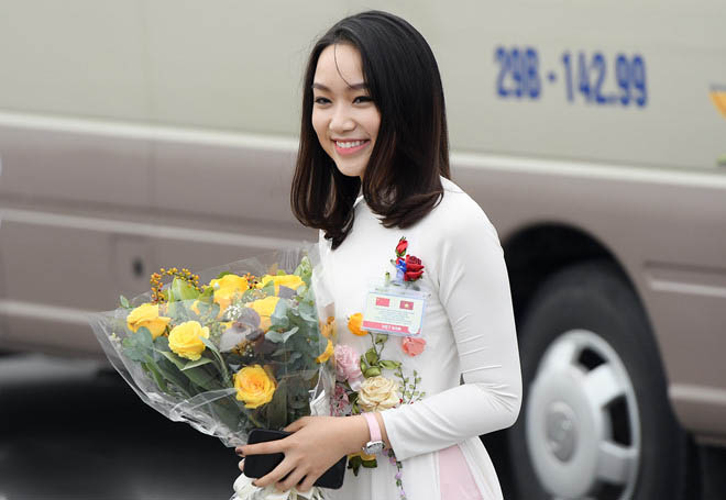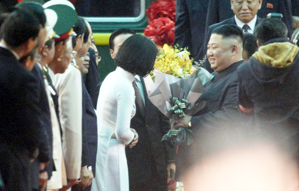 Nguyễn Thu Uyên, sinh viên trường Cao đẳng Sư phạm Lạng Sơn, vinh dự được tặng hoa nhà lãnh đạo Triều Tiên Kim Jong Un sáng 26/2.