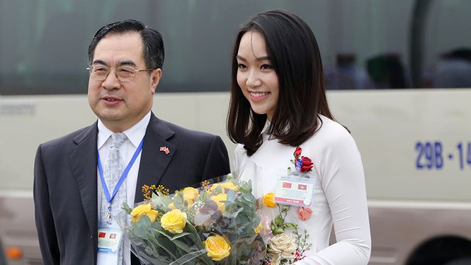 Phạm Thu Trà - đón Chủ tịch Trung Quốc Tập Cận Bình năm 2017