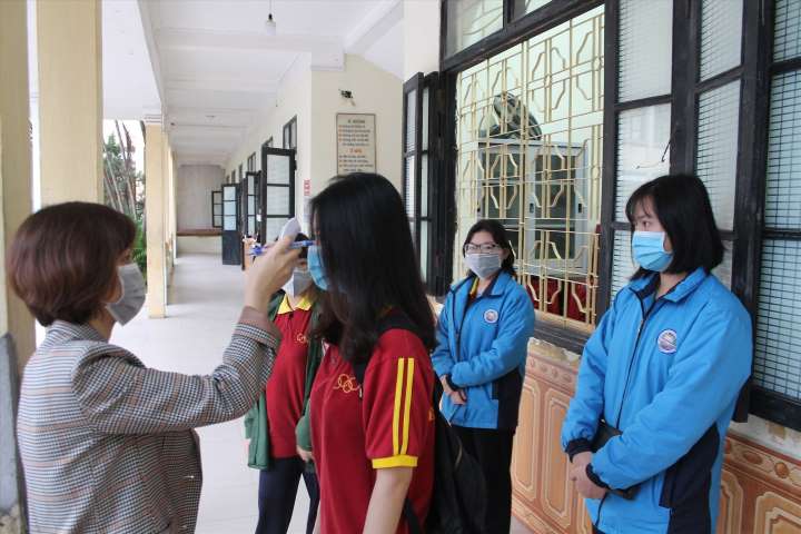 Các trường, địa phương đều tuân thủ những quy định nghiêm ngặt khi học sinh quay trở lại học tập, trong đó có việc mang khẩu trang, kiểm tra thân nhiệt, bố trí các vòi rửa tay, xà phòng,… Ảnh minh họa