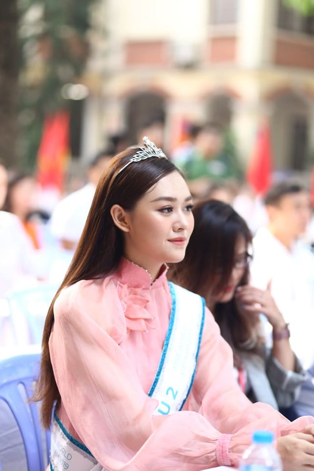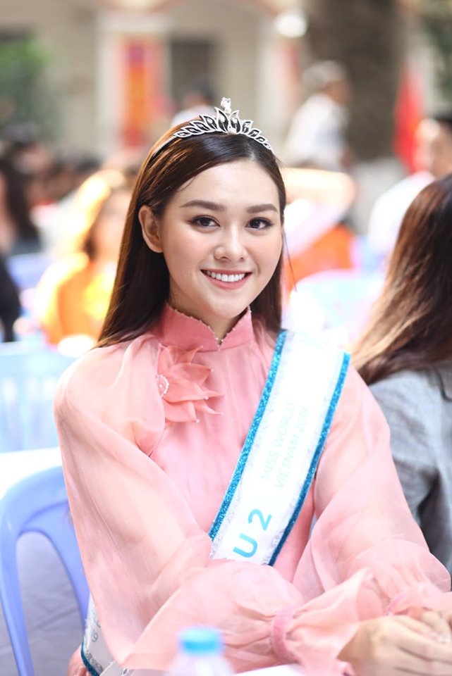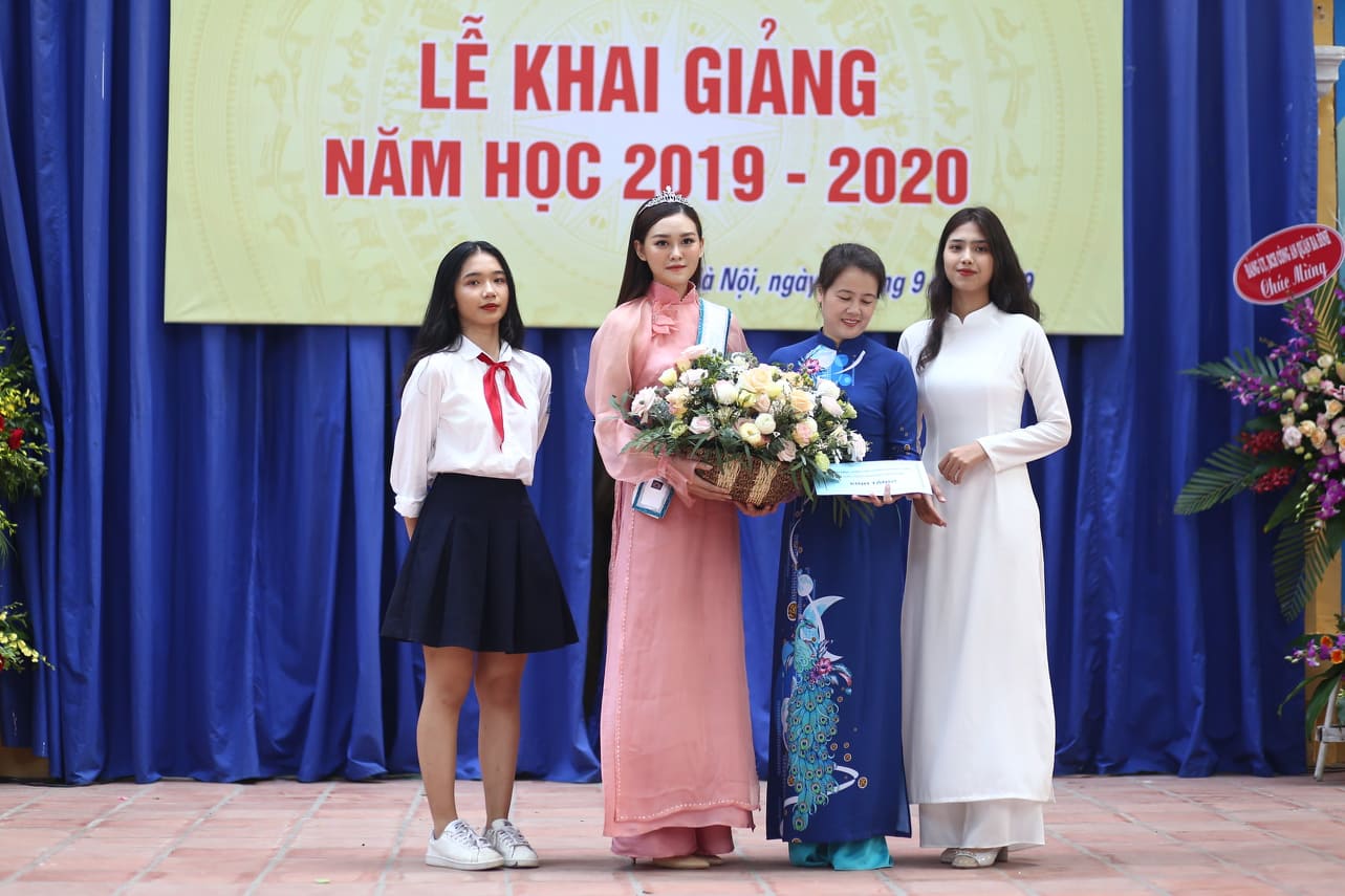Sáng nay (5/9), Á hậu 2 của Miss World Vietnam 2019 tham dự lễ khai giảng năm học mới cùng cô trò ngôi trường cấp 3 nơi Tường San từng theo học. Cô xuất hiện rạng ngời trong bộ áo dài cách tân màu hồng phấn.