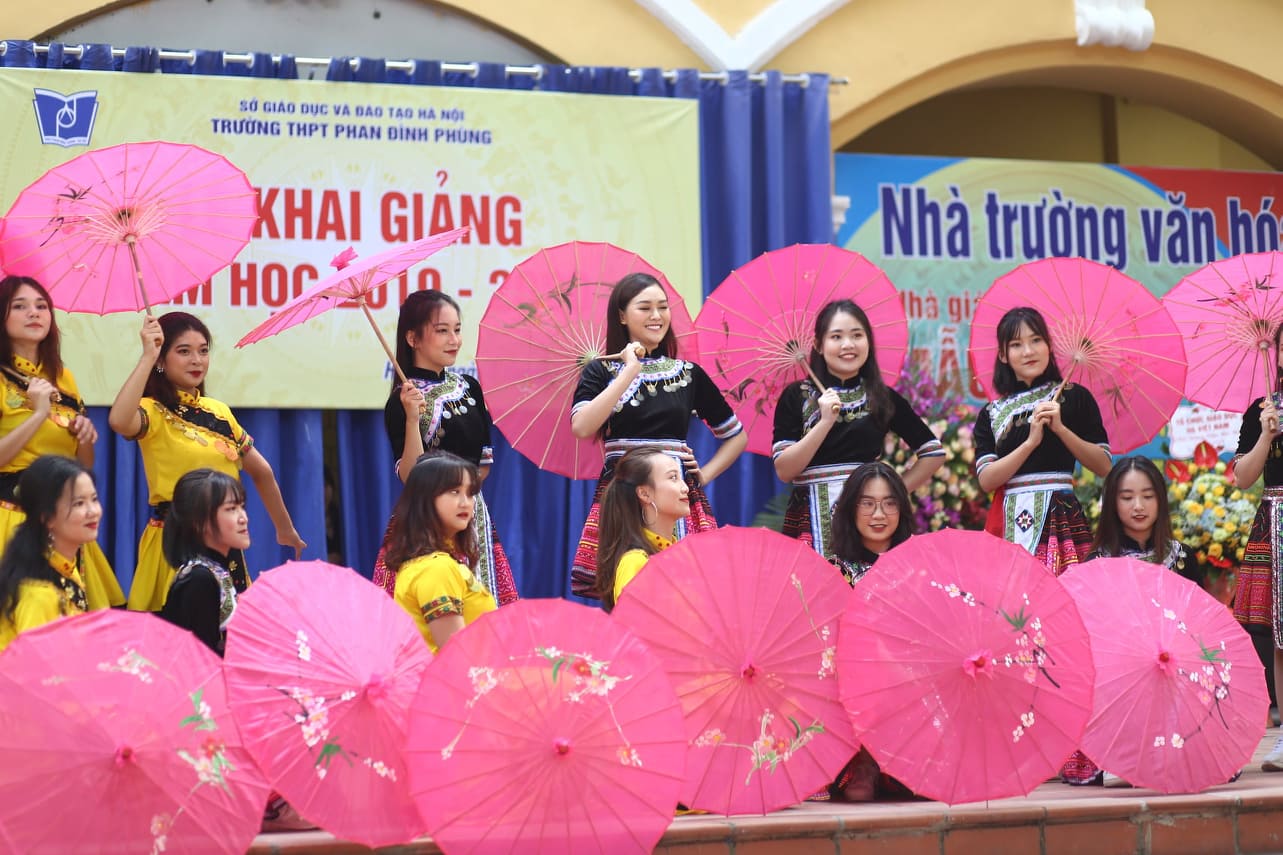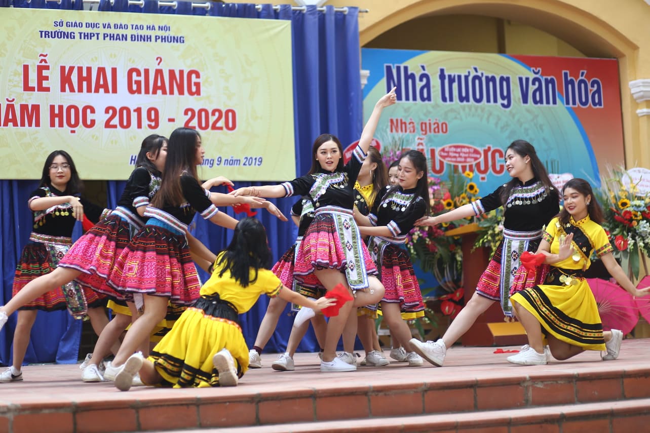 Tường San cùng các bạn học sinh trình diễn điệu nhảy theo nền nhạc bài hát “Để Mị nói cho mà nghe” khuấy động không khí của buổi lễ khai giảng.