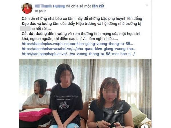 Cụ thể nội dung của bài đăng như sau: “Cảm ơn những nhà báo có tâm, hãy để những bậc phụ huynh lên tiếng. Đạo đức và lương tâm của thầy Hiệu trưởng và hội đồng nhà trường bị *** tha hết rồi… Cắt đứt đường đến trường và xem thường tính mạng của một học sinh khá, ngoan ngoãn, thi điểm cao chỉ vì… ốm nghỉ nhiều…”