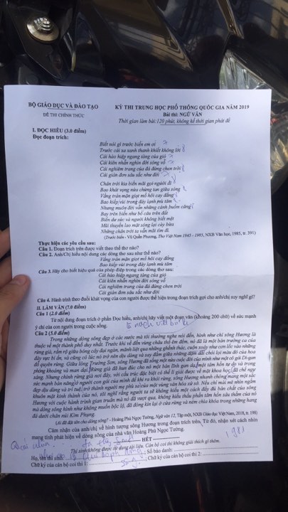 9h35: Rất nhiều thí sinh đã có hoàn thành xong bài thi Ngữ Văn của mình, bài thi Ngữ Văn năm nay được đánh giá nằm ở mức trung bình, phù hợp với các bạn học sinh trung bình, khá. Đáng nói hơn, tác phẩm nằm trong phần văn tự luận 5 điểm chính là tác phẩm “Ai đã đặt tên cho dòng sông” của nhà văn Hoàng Phủ Ngọc Tường.