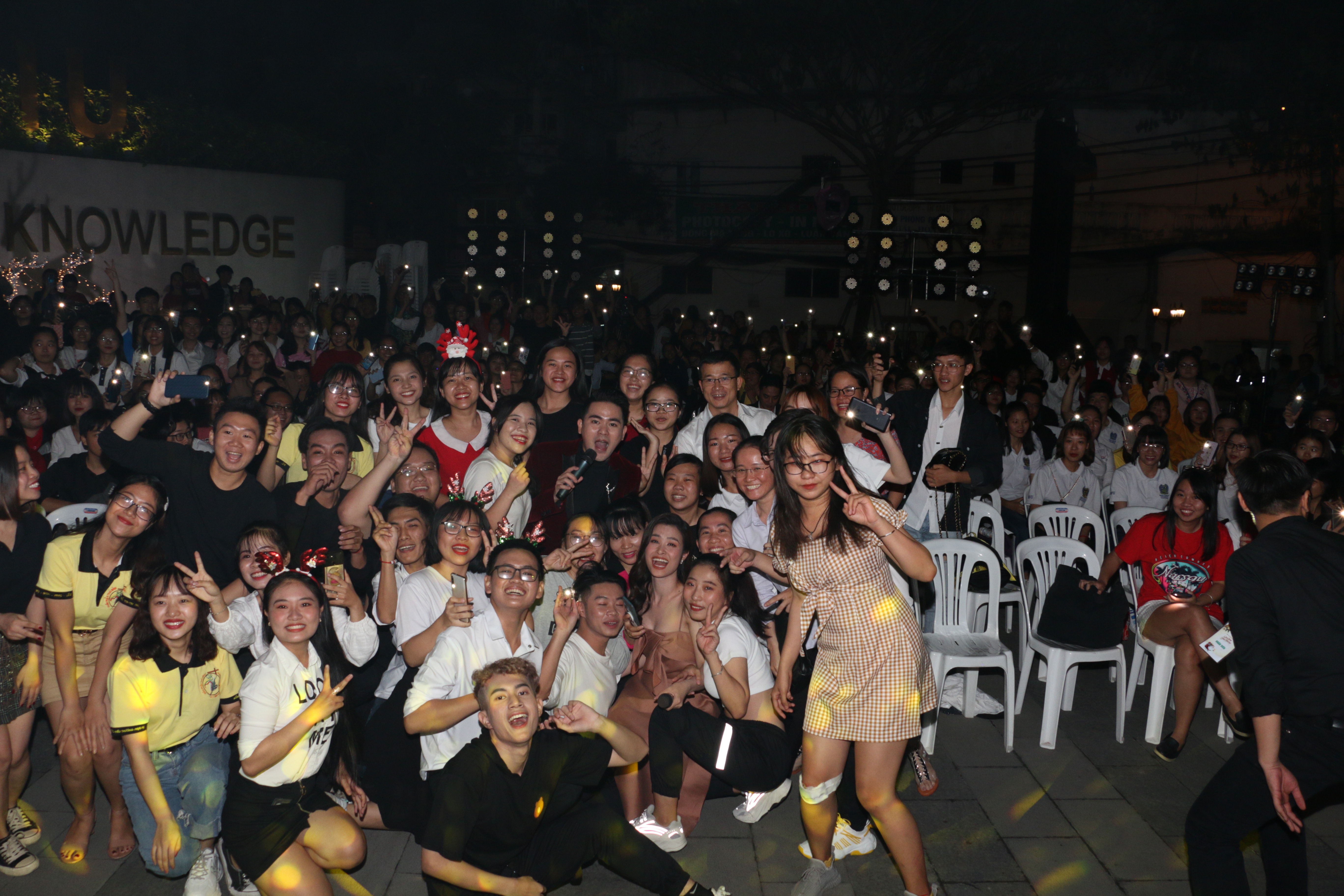 Các bạn sinh viên hào hứng với không khí đêm nhạc giáng sinh.