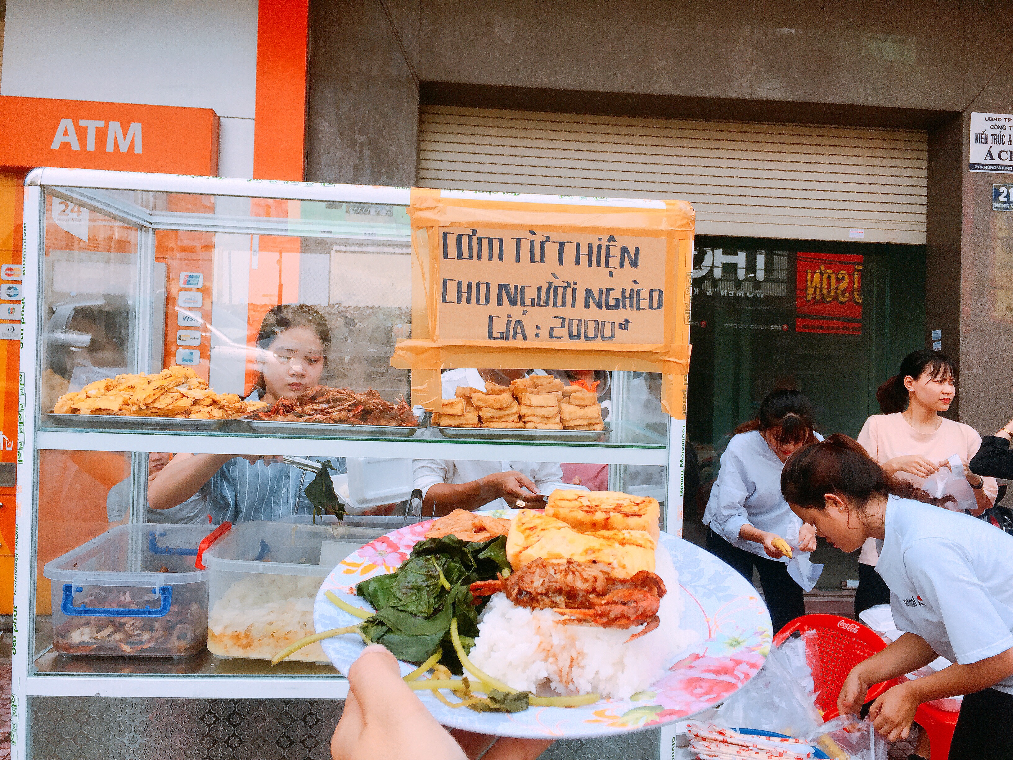 Những suất cơm giá 2k được trao tới tận tay người lao động nghèo.
