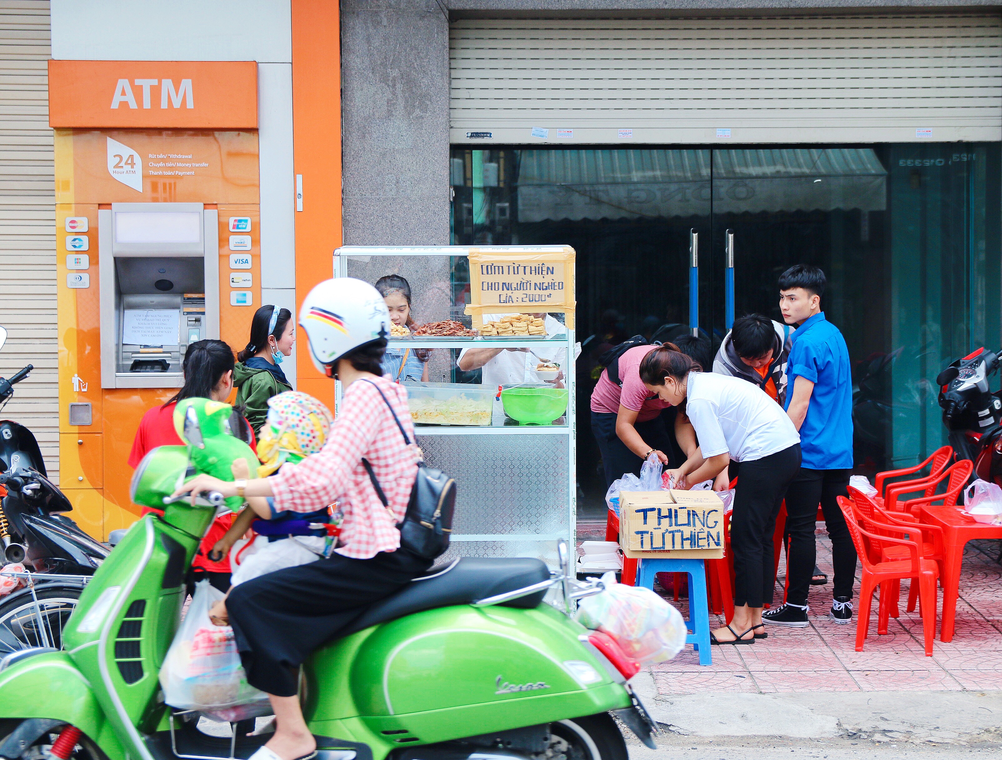 Sinh viên mang những suất cơm từ thiện đi bán cho người lao động nghèo với giá chỉ 2k, ai không có tiền, họ sẵn sàng tặng free.
