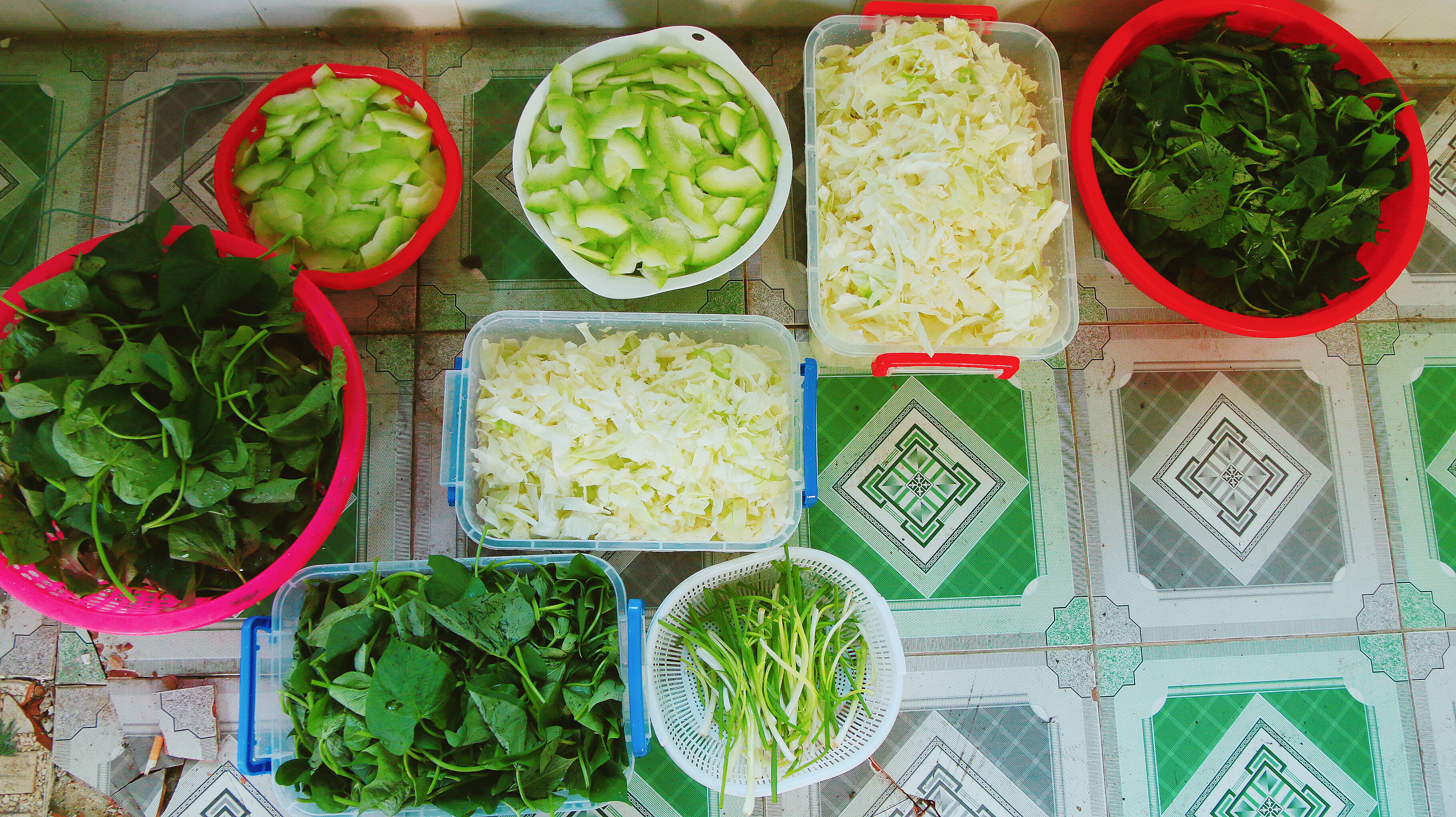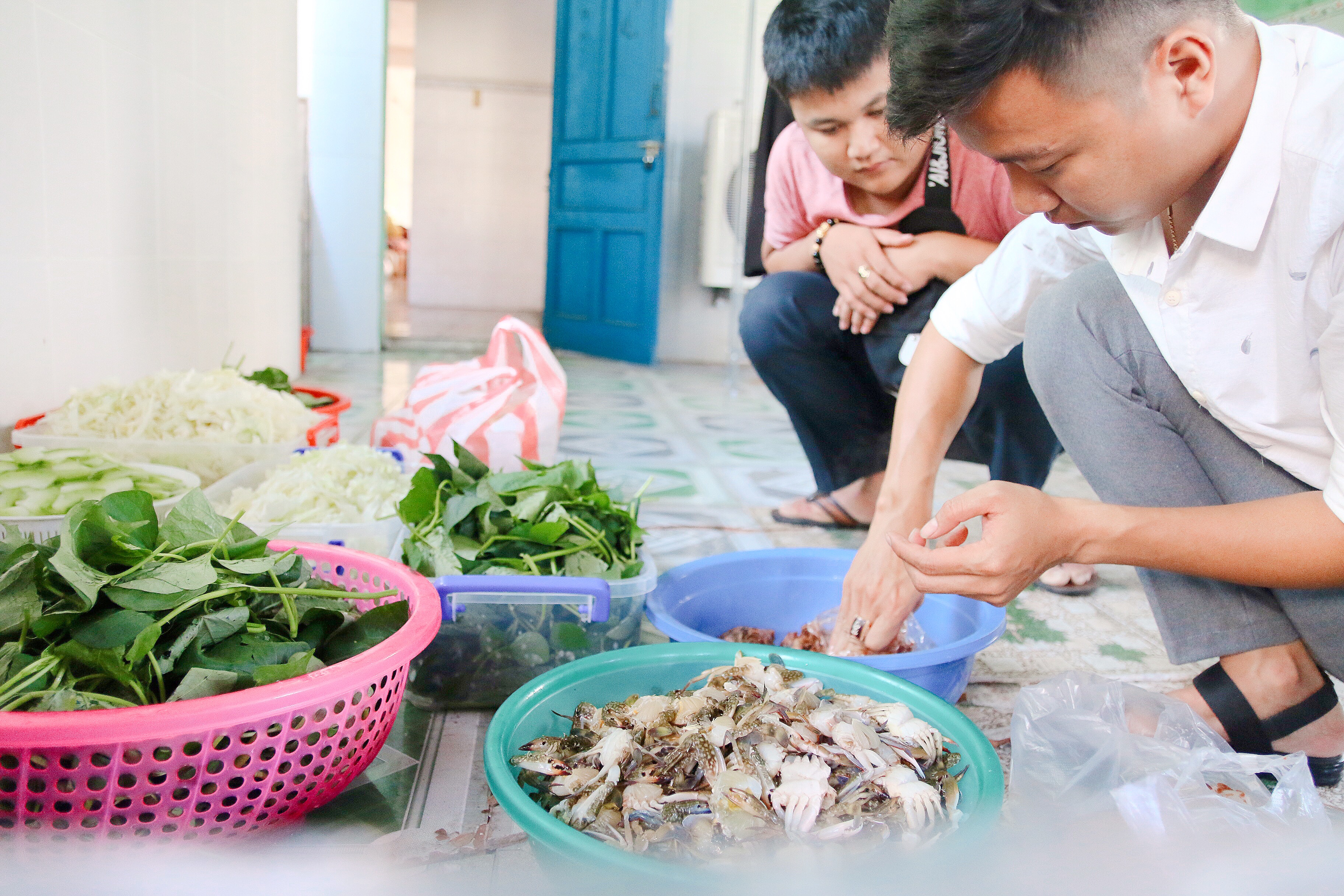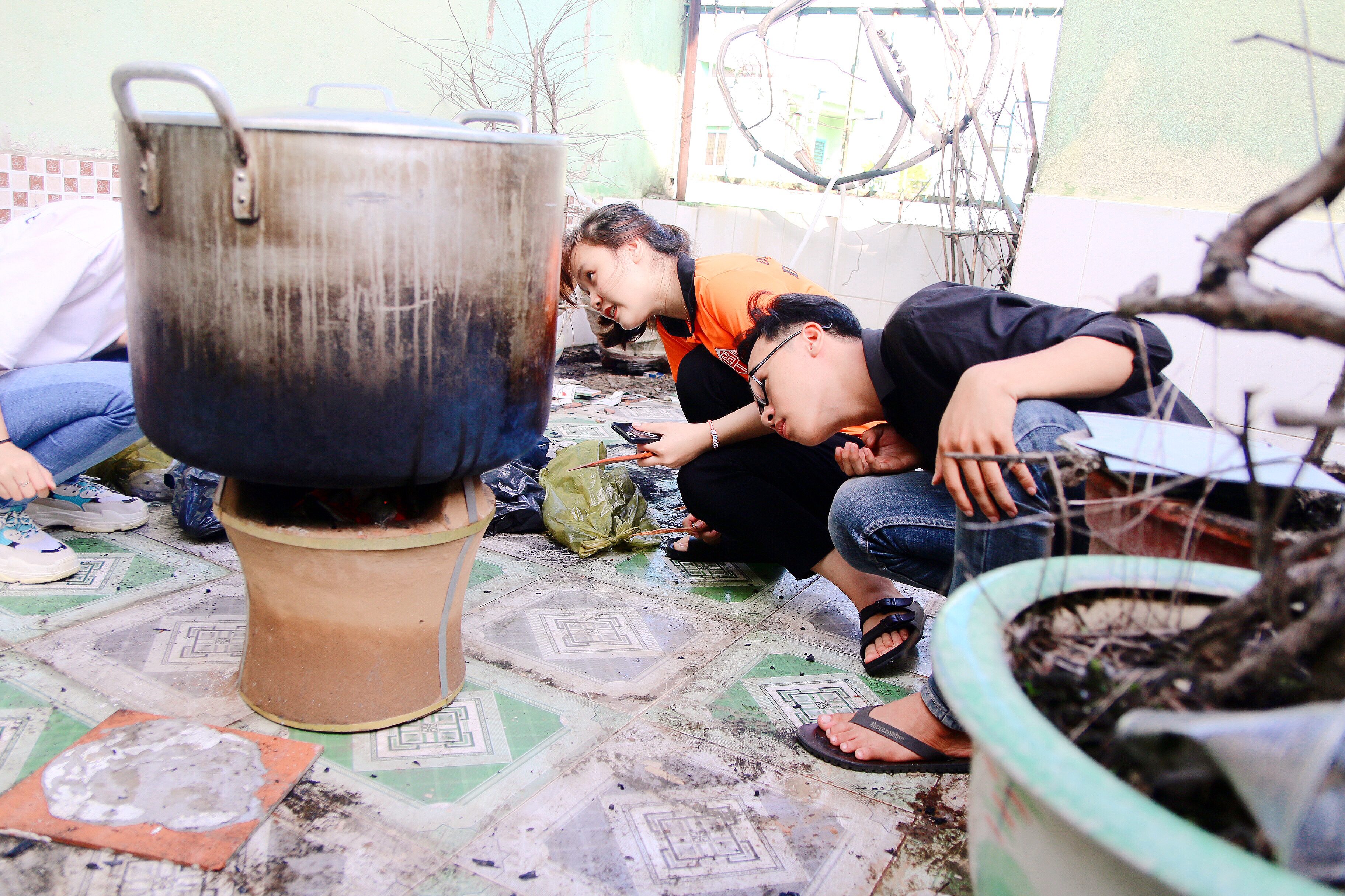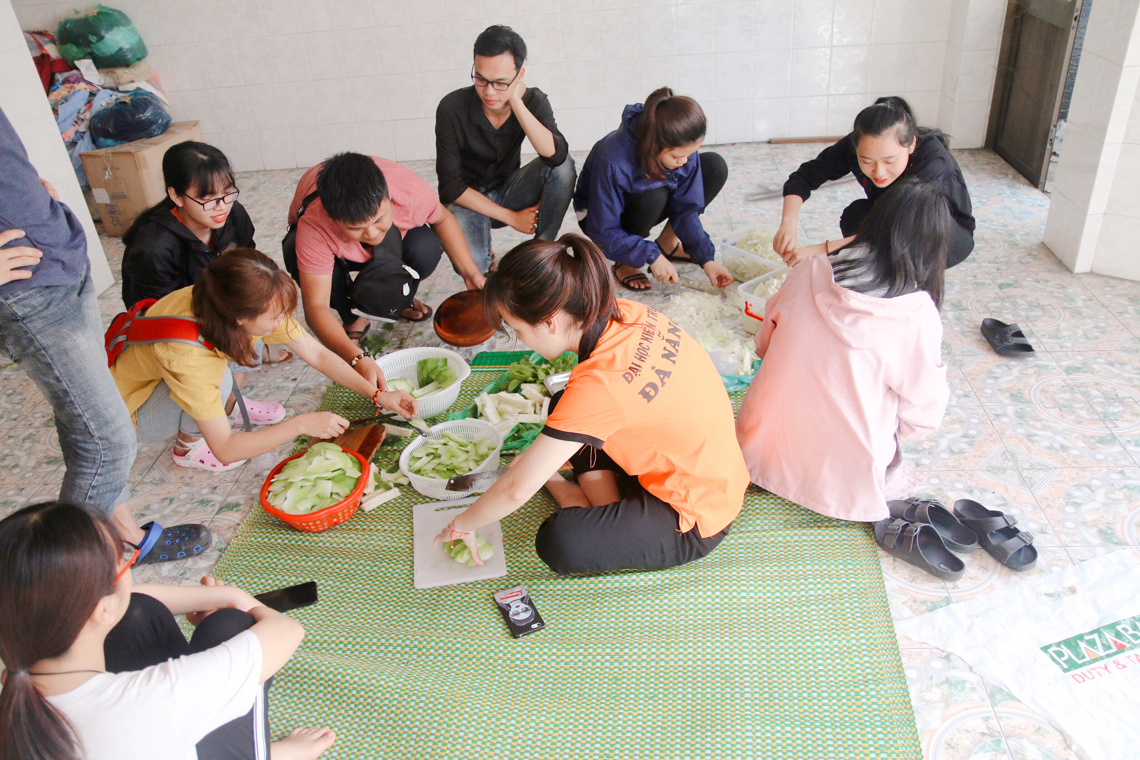 Các bạn sinh viên hối hả chuẩn bị nấu ăn.