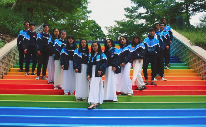 Ngôi trường có nhiều bậc thang đa dạng các sắc màu này chính là trường THPT Hùng Vương (huyện Đơn Dương, tỉnh Lâm Đồng). Xuất phát từ công việc của một nhóm học sinh bị phạt, ý tưởng về những bậc thang “7 sắc cầu vồng” này đã được ra đời, từ đó trở thành không gian sống ảo vô cùng “xịn sò” của các cô cậu học sinh đang theo học tại trường.
