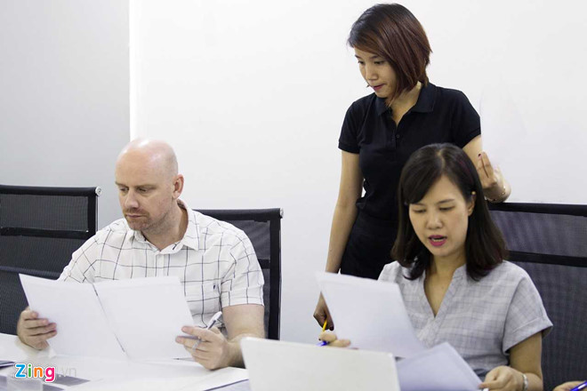 Thầy Chris Shallcross và nhóm giáo viên của Language Link giải đề thi Tiếng Anh tại tòa soạn Zing. Ảnh: Hoàng Hà.