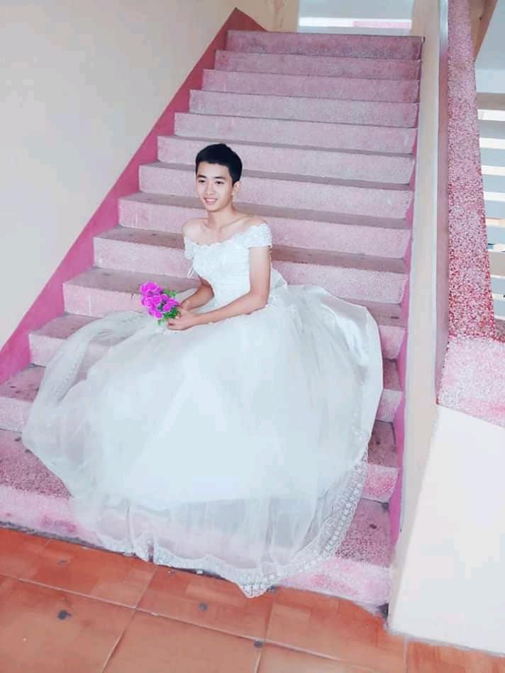 Nam sinh mặc váy cưới để chụp ảnh kỷ yếu.