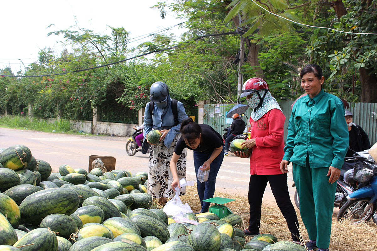 Rất nhiều bạn sinh viên đến để mua dưa ủng hộ