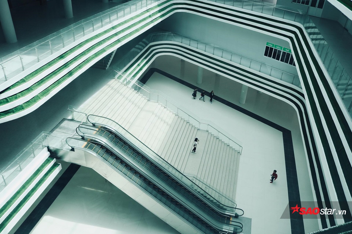 Lối đi lên cầu thang đều được bố trí cả thang cuốn lẫn thang bộ.