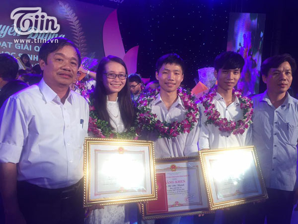 Phi Khánh nhận bằng khen trong một lễ tuyên dương học sinh có thành tích xuất sắc.