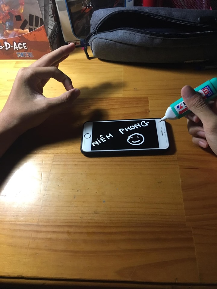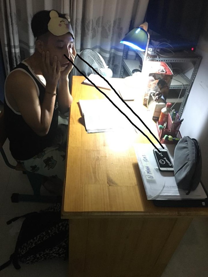 Để tình trạng này không thể diễn ra, một nam sinh đã nâng cao quyết tâm khi quyết định “cai điện thoại”. Thậm chí, để thể hiện sự quyết tâm, cậu bạn này còn dùng hẳn bút xóa để viết hai chữ “niêm phong” lên màn hình điện thoại và cách ly nó như một thứ lây nhiễm cách xa hàng nghìn…. milimet.