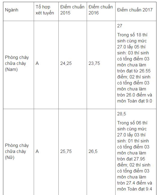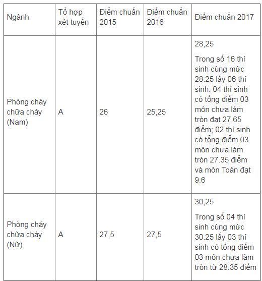 Điểm chuẩn 3 năm gần nhất của ĐH Phòng cháy chữa cháy: