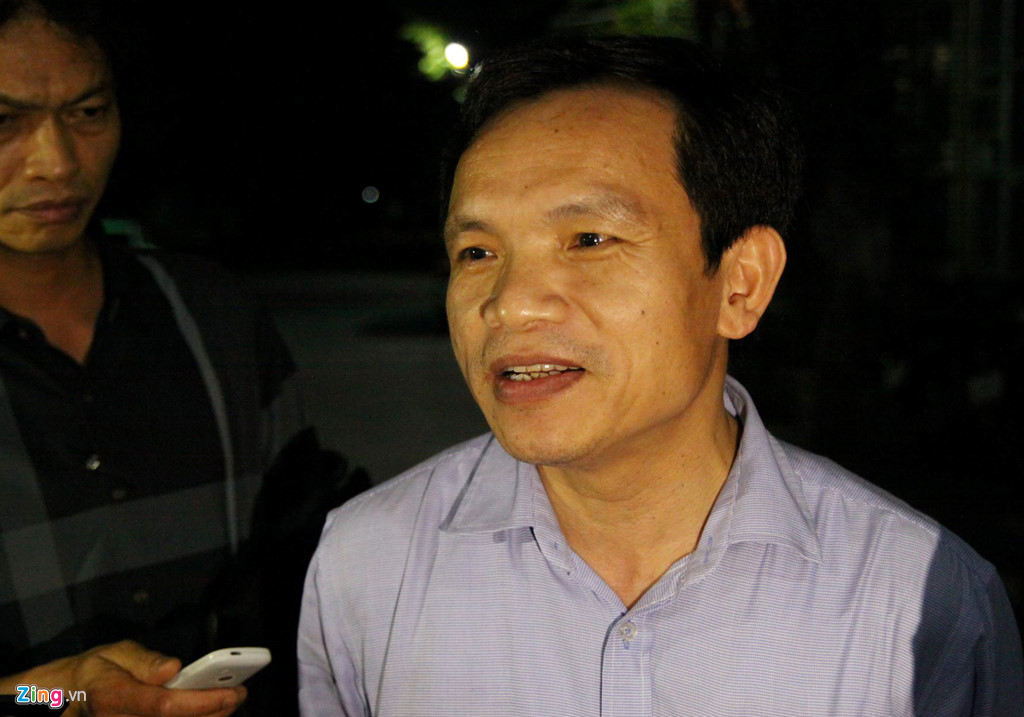 Ông Mai Văn Trinh trả lời phỏng vấn báo chí lúc gần 1h sáng 17/7, cho biết đang chấm thẩm định toàn bộ bài thi trắc nghiệm của thí sinh Hà Giang. Ảnh: Nguyễn Sương/ Zing.vn.